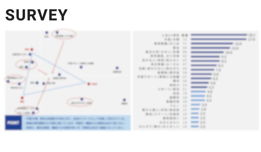 400名強に渡る学生・教員・職員にWEBアンケートを実施。大学へのブランドイメージがそれぞれの立場でどのように異なるのかギャップを可視化。また、個別にデプスインタビュー・グループインタビューも実施。現状の課題の把握と大学への期待を抽出しました。これらの結果をもとに大学のブランド力を上げるための6つの力(KU PRIDE)を定義し、各施策への落とし込みました。